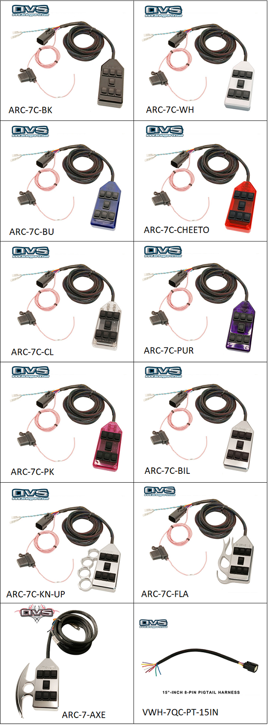 8個の12V DCバルブで使用できるよう15インチのピグテールハーネス(VWH-7QC-PT-15IN)が付属します。